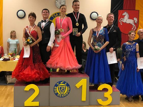 Heinz Scharf und Dagmar Steffenhagen von der Tanzsportabteilung des MTV Wolfenbüttel gewinnen bei den Niedersächsischen Landesmeisterschaften 2019 am 31. August im Tanz-Sport-Centrum Gifhorn die Bronzemedaille in einem Teilnehmerfeld von 18 Turnierpaaren. Sie erfüllten sich den Traum aller Tänzerinnen und Tänzer, in der Sonderklasse, der höchsten deutschen Turnierklasse, angekommen zu sein; und das mit glänzendem Edelmetall in der Klasse Sen. III A Standard. Ein gutes Omen für die weitere erfolgreiche Tanzkarriere des charismatischen Turnierpaares. Seit Einstieg in die attraktive Sportart Turniertanzen belegten sie nur vordere Plätze und waren stets in den Endrunden wiederzufinden. Eiserne Disziplin und Freude am Tanzen führten zu den beachtlichen Erfolgen der Wolfenbütteler, denn ihre Devise “Ohne Fleiß kein Preis” begleitete sie vom ersten Tanzschritt an.