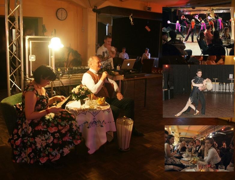 Nach dem Eröffnungstanz, dem Modetanz “Letkiss” der 60er Jahre, nahm Gabriele Denk in ihrem Retrosessel der 50er Jahre Platz und führte ganz gemütlich durch den brillanten Abend. Die Tanzfläche und das “Tischlein, deck Dich” waren freigegeben, und mit einem bunten Unterhaltungsprogramm starteten die Damen der Fitness- und Tanzgruppe des MTV Wolfenbüttel, unter der Leitung von Sandrine Clodius, mit zwei aktuell einstudierten Tänzen; besonders hervorzuheben der Swing-Showtanz mit hübschen roten Hüten. Aber auch die zahlreich anwesenden Jugendlichen beherrschten salopp und lässig die Modetänze der damaligen Zeit, wie Twist, Bossa Nova, Rock ‘n’ Roll und Boogie-Woogie, sodass die Tanzfläche übervoll war.