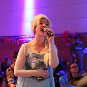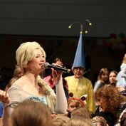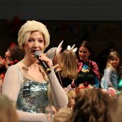 Eiskönigin Elsa singt vor hunderten kleinen und großen Narren